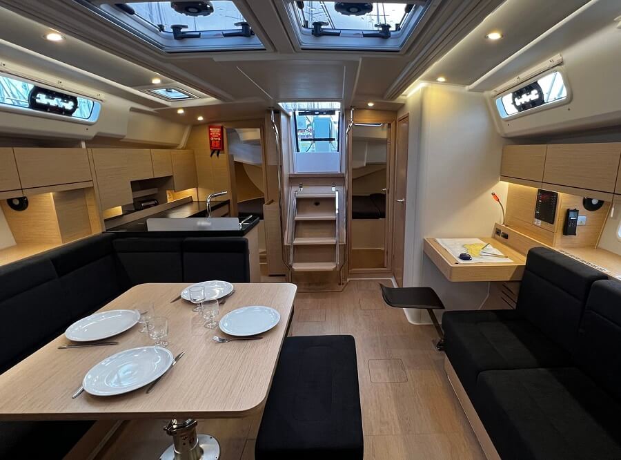 - Sails: Fully battened Mainsail 59.00 m2, Furling genoa 44.00 m2, Storm Jib 9.00 m2